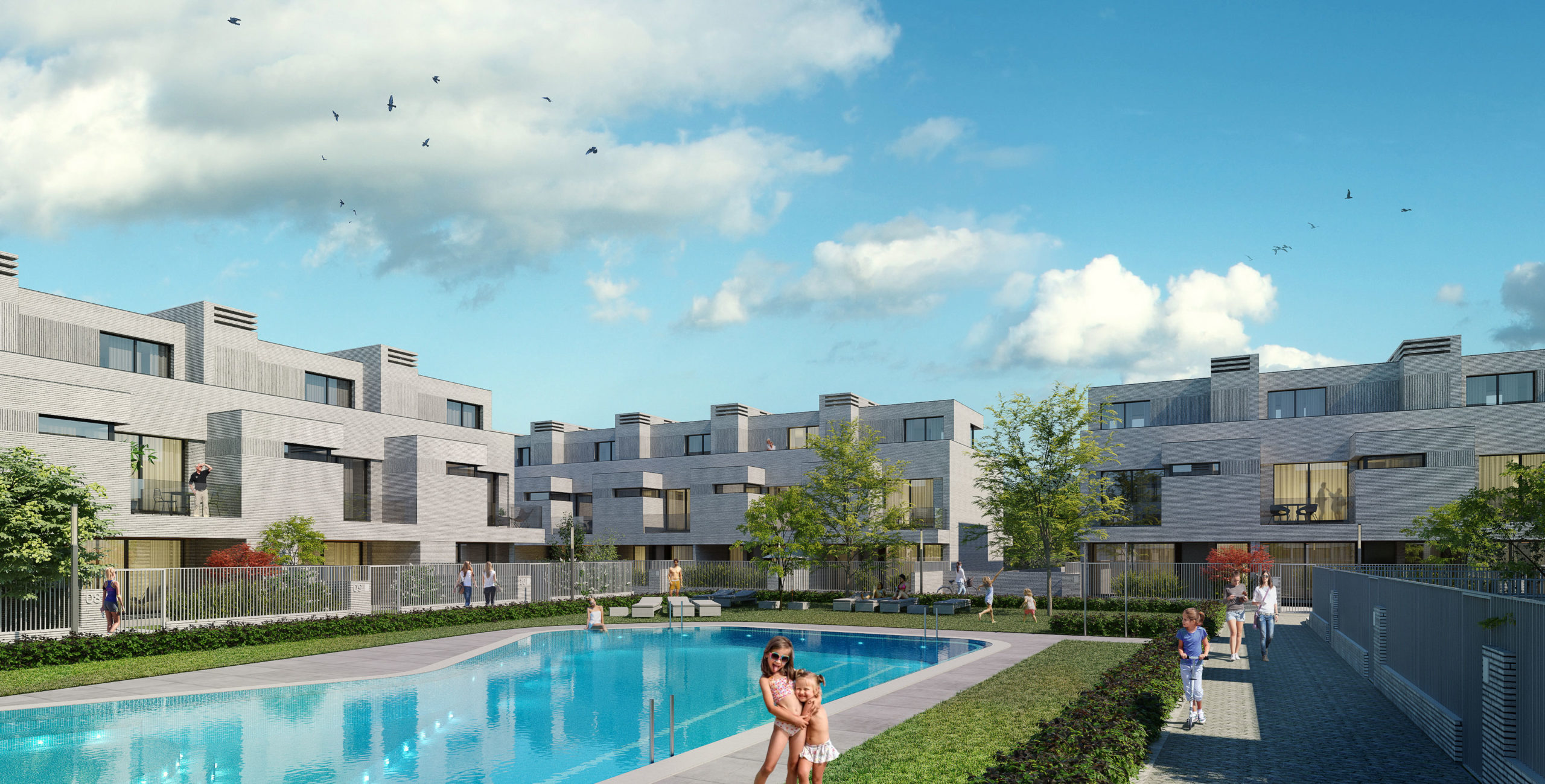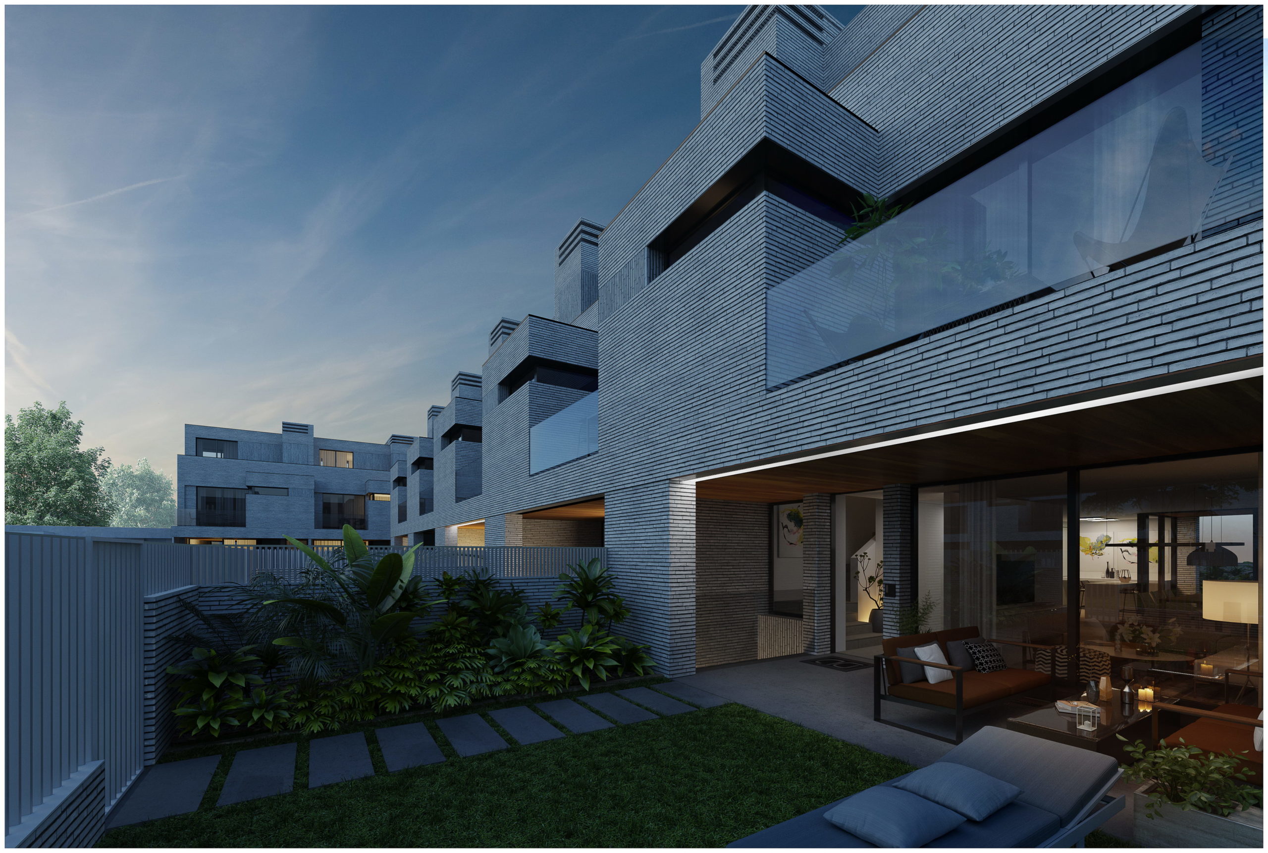 La operación se puede considerar por sus características más inmediatas como un diseño de vivienda adosada, sin embargo, la composición de la fachada y del conjunto no se identifica como se entiende comúnmente esta tipología. Se ha tenido en cuenta la composición tanto individual como colectiva en toda la agrupación.