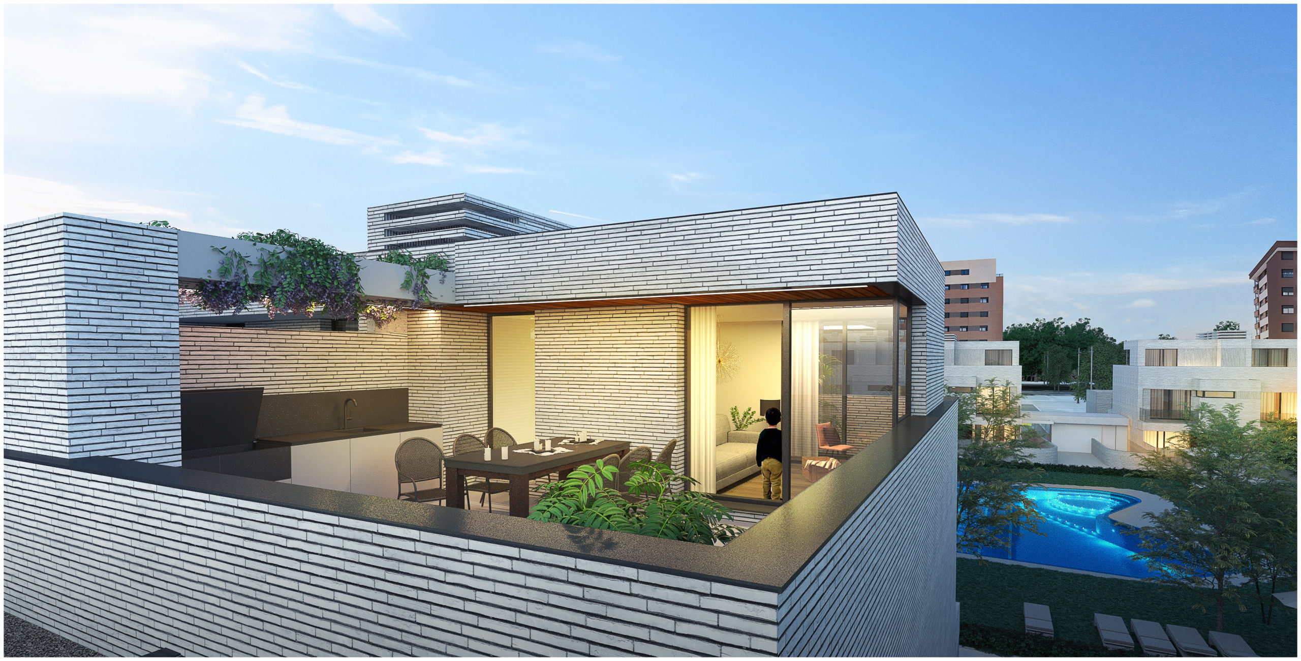 El objetivo de la propuesta se basa no solo en conseguir una vivienda funcional y atractiva, sino en la optimización constructiva del conjunto residencial, minimizando su huella bajo rasante y permitiendo el máximo aprovechamiento de los espacios exteriores vinculados a la vivienda, tanto privados como comunes.